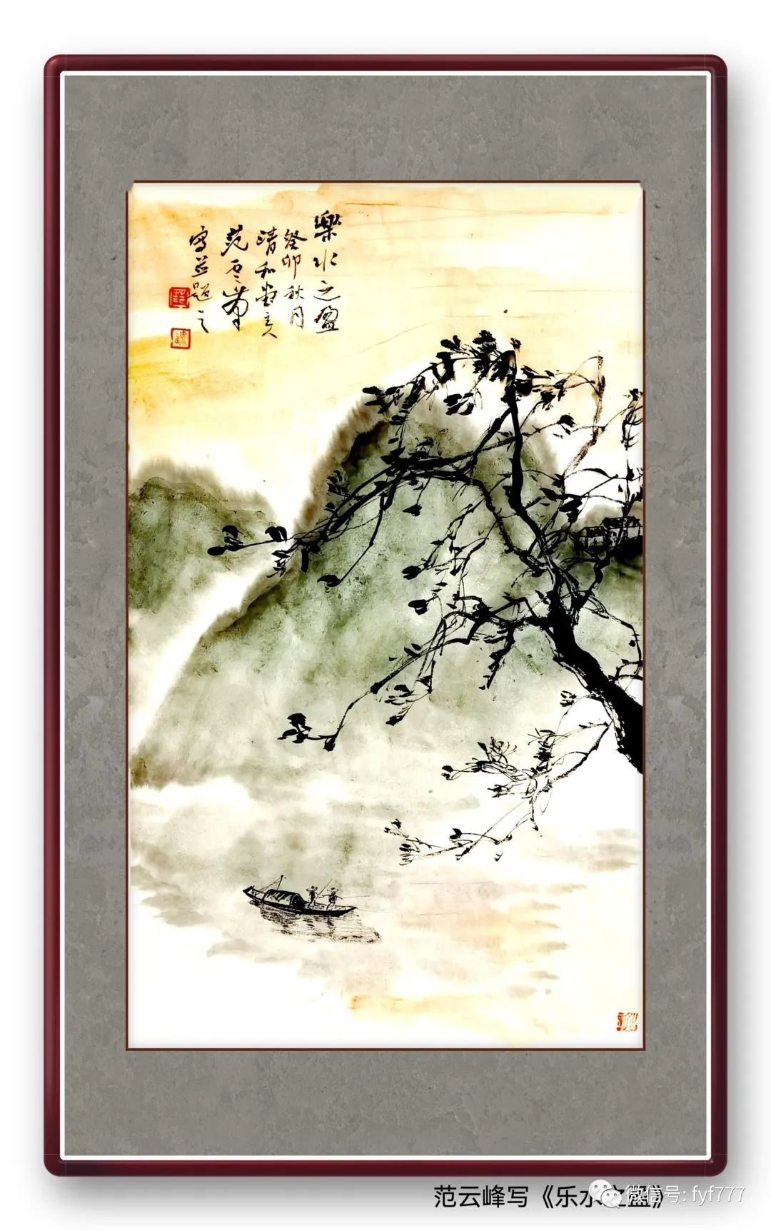 这幅小景山水画是我用笔墨勾勒出来的,它主要由远山、近水、小舟和大树等元素构成。远山在画面的最远处,山峰苍茫,若隐若现。它们代表着我对过去的怀念,那些曾经的美好时光和难忘的记忆。