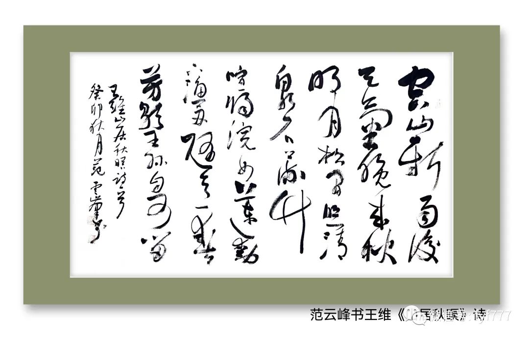 昨天在苏州与福华织造张总长建兄等朋友相聚聊天,聊到秋天的雨后,不经意间聊到了唐王维的诗《山居秋暝》之意境。回到住处就应张总之命笔而书之此诗。然,我用草书写之,虽以很大程度的来通过笔墨来表达《山居秋暝》的诗意和诗人创作时的背景。