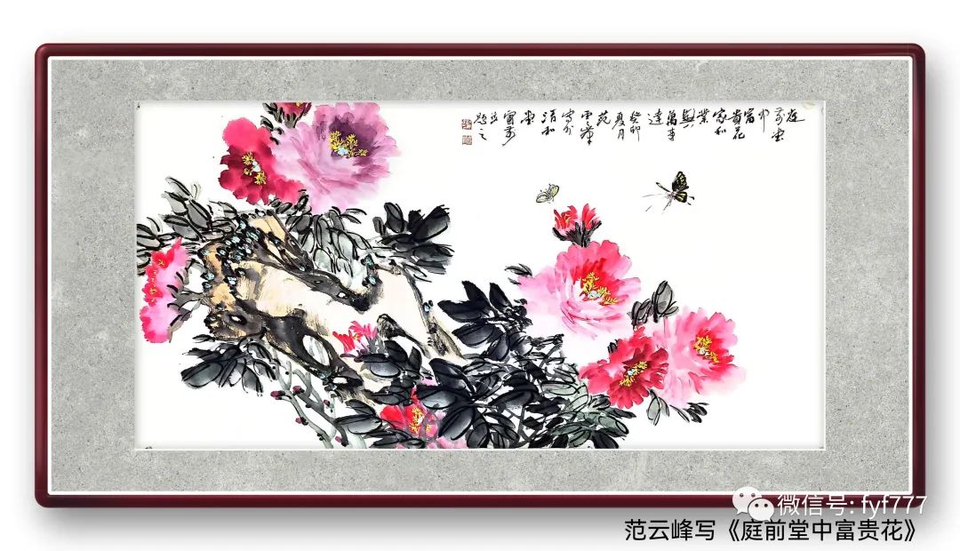 在创作这幅牡丹图中,我首先想到的是这幅图挂在客厅沙发后上方的位置。然,经过深思熟虑,我决定在画中加入山石的元素。在国画写意中,石寓意为山,有着靠山之意。故,坐在山之前靠山之