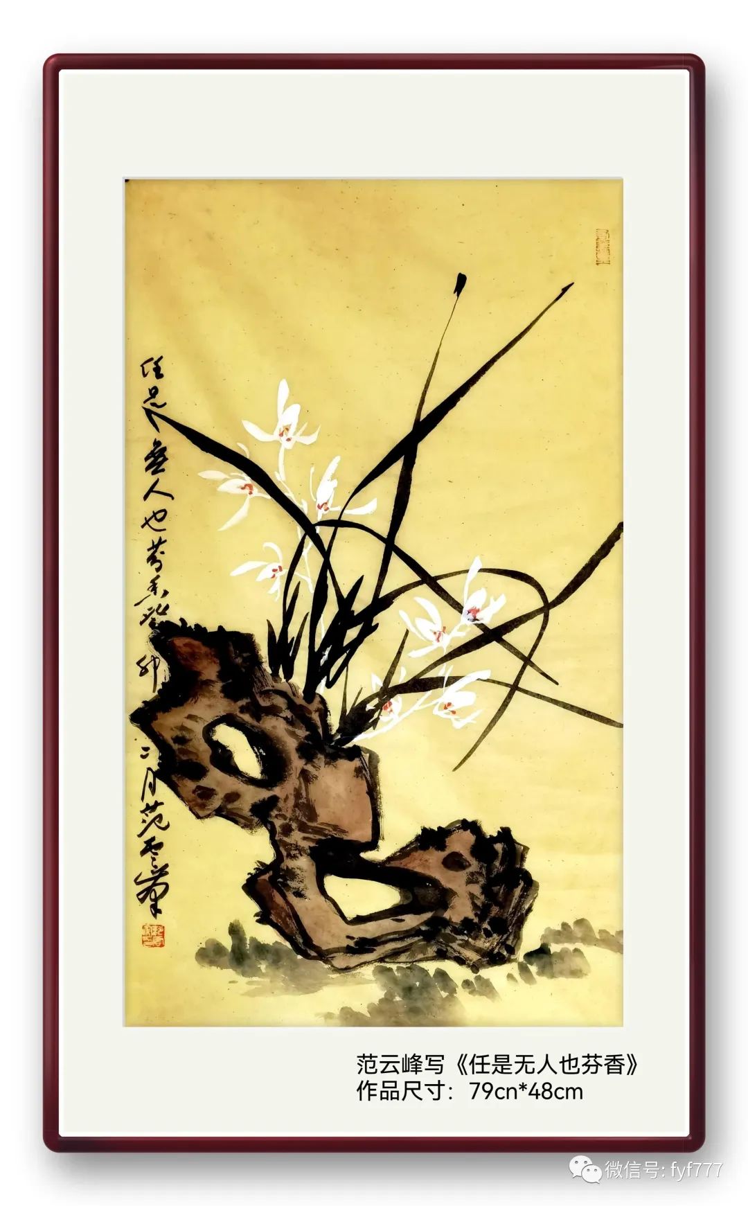 前天接到北京国兰奇石画展的邀请通知,在工作室的朋友说这对老范说太简单了,我说写兰看似简单实际不易,就写兰花花瓣来说,要以书法来写,尤如写行书、草书般爽快。然,如果过慢则渗化不清。同时还要注意花瓣的交叠的疏密变化,花头用笔之连贯,忌写一瓣调墨一下。特别是在用笔时提按、虚实变化中,切忌无墨色及无轻重的变化,行笔要劲利、潇洒,每笔皆要讲究笔法,如同写字一般,勿浮滑尖薄。用笔用墨用色也非常讲究,我写兰花多