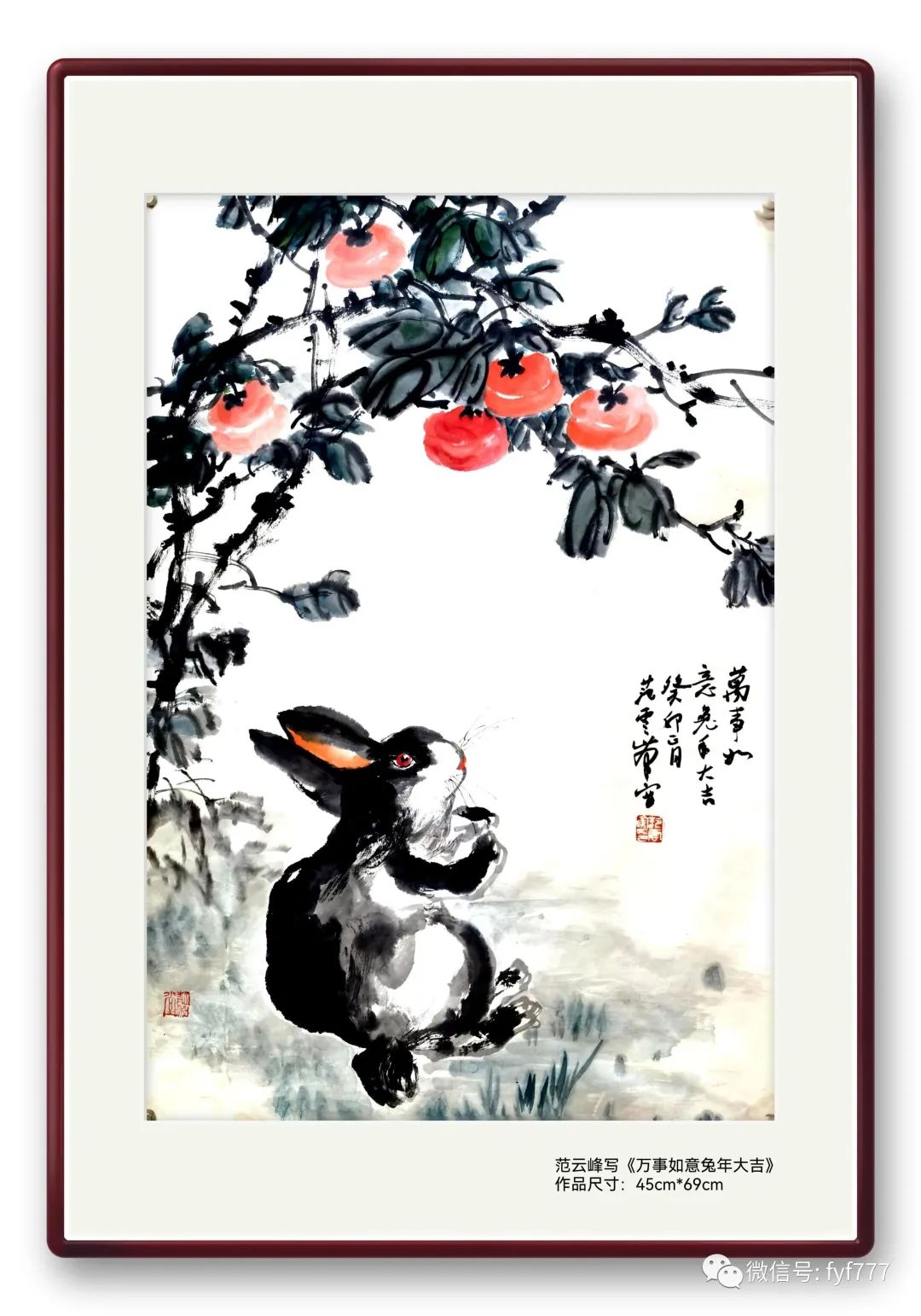 昨天上海的于庆、苏州的作文和郑州老家老家好友一起小聚,举杯祝福兔年吉祥,万事如意。回家就提笔写此《万事如意兔年大吉》图,朋友说这幅图意境很喜欢,兔子似乎在蹦跳与上面的柿子对话,两者一种静一动很有自然意趣。晨起再看,觉得似乎是这样的,然,这意趣来自于笔趣,酒微醉时用笔可能更在无意自然状态,对所要表达物象体现更随意生动,这种偶然写之,皆于笔趣。而所谓的笔趣,有意趣和天趣两种之意构成。至此,我认为写意画