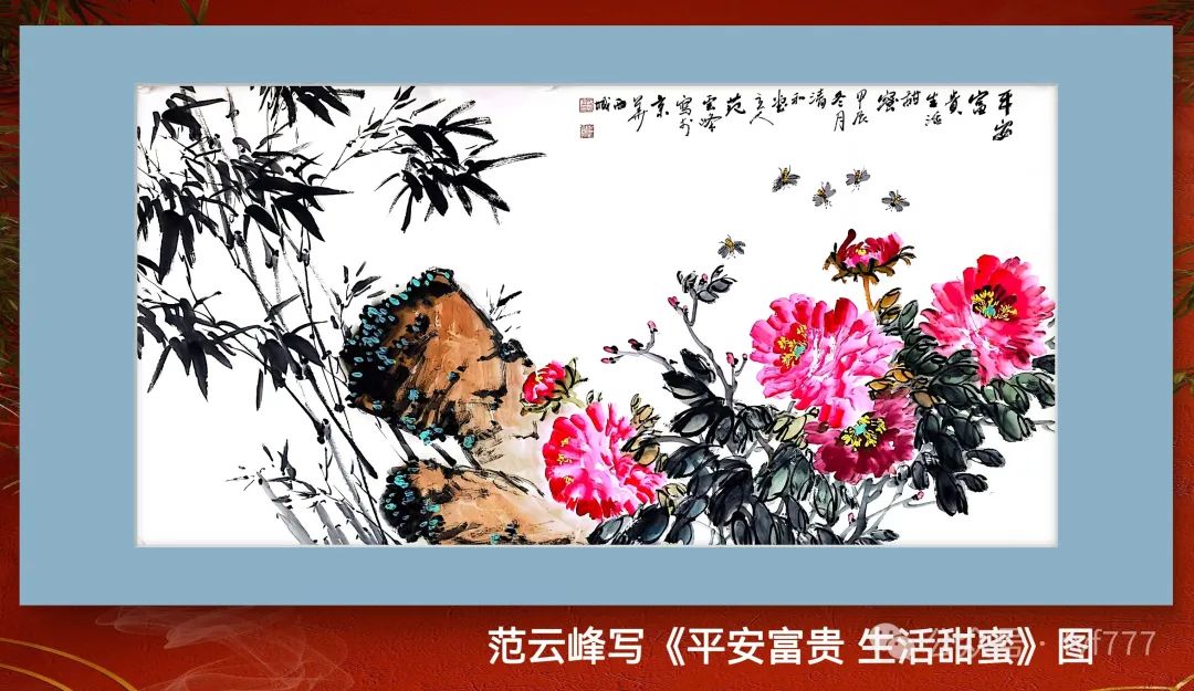 昨日,几位好友莅临我北京工作室,我清和堂主人范云峰,与他们相谈甚欢。话题围绕着我所钟爱的牡丹画作以及其独特的画法展开。就在此时,一位好友竟提出想要收藏我一幅牡丹图,这无疑是对我艺术创作的极大认可与鼓励。于是,我欣然提笔,现场挥毫,创作了这幅《平安富贵,生活甜蜜》的牡丹图。